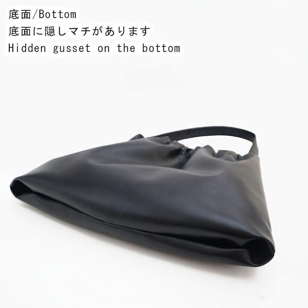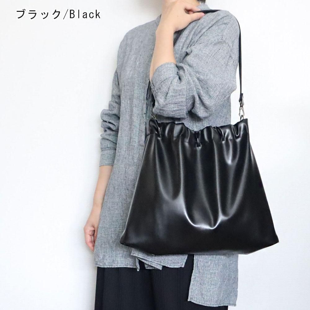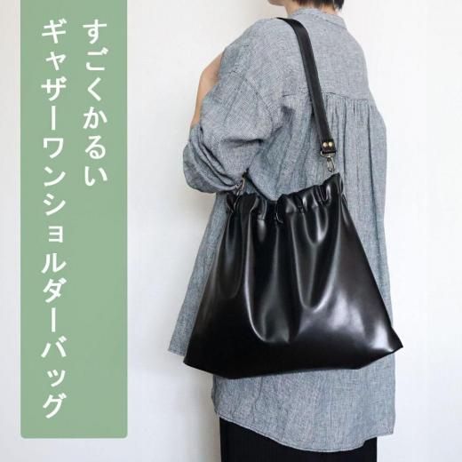 ギャザーバッグならではの可愛いフォルムを表現するため、厚さ0.8mmの薄手な素材を厳選しました。荷物の量に合わせてくたっとした自然な形が生まれます。