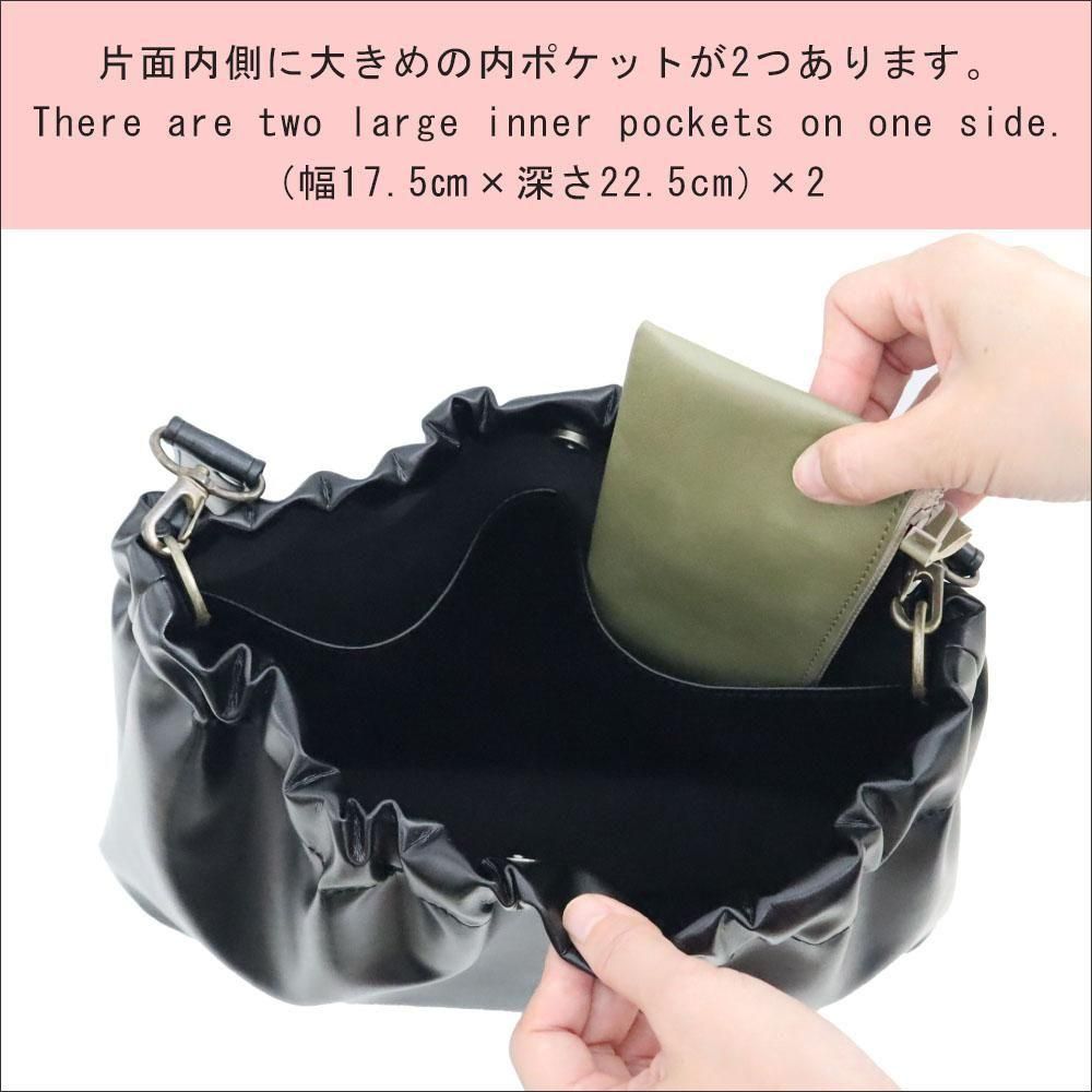 そのお悩みを解決するため、バッグの口元にギャザーをあしらいました。 中身が見えにくいだけでなく、デザインのアクセントにもなっています!